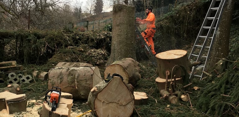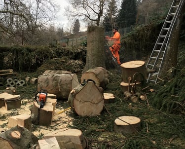 Sur demande, nous pouvons débiter les morceaux de bois coupés si vous souhaitez garder et stocker le bois, par exemple.