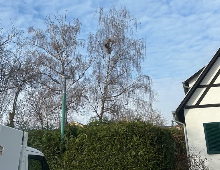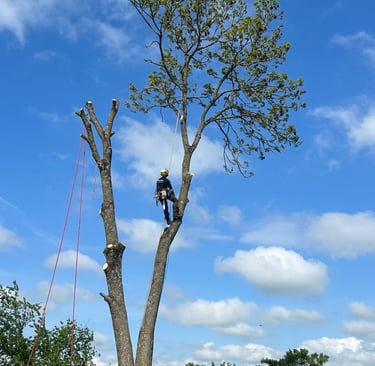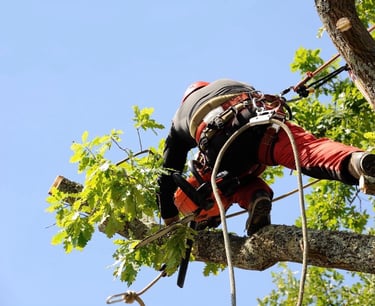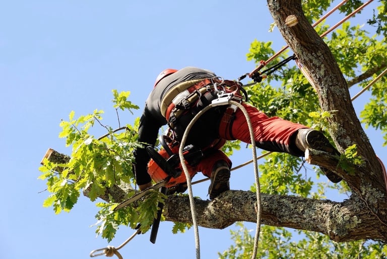 Intervention d’élagage en hauteur sur zone difficile d’accès, réalisée avec équipement sécurisé.